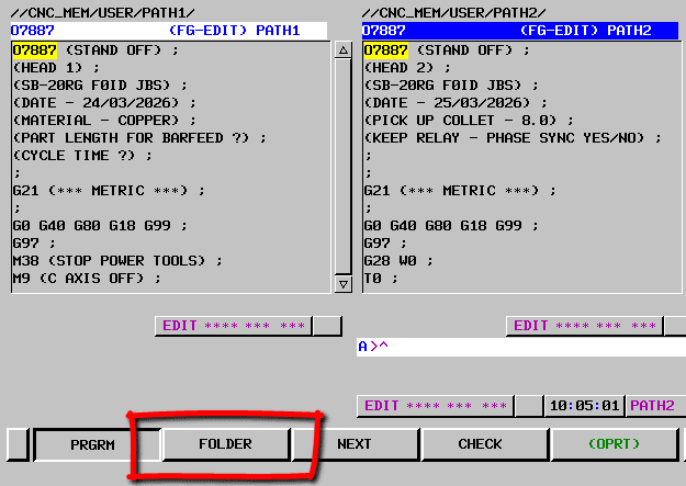 In order to run or edit a program on a Fanuc control you first need to make it active. On a Fanuc control you are editing in real time so you don’t need to save your work. Unfortunately any edits you make are permanent.