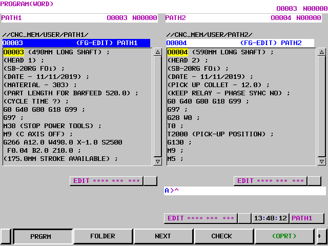 In order to run or edit a program on a Fanuc control you first need to make it active. On a Fanuc control you are editing in real time so you don’t need to save your work. Unfortunately any edits you make are permanent.